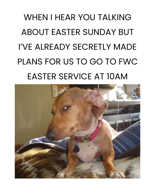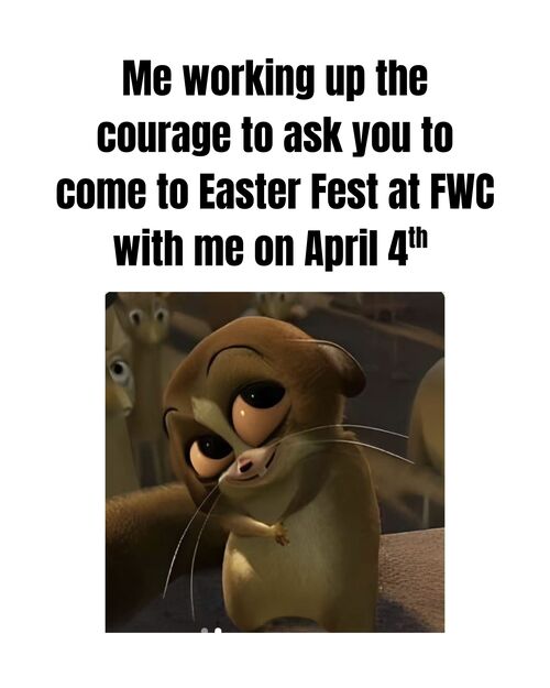 We have made inviting someone to Easter Weekend at FWC easy this year. Check out these premade invites below. Find which ones you like, click the image and it will open a new window, click/ hold and save it to you phone, then just text it to your friends! There are invites for our community event Saturday as well as our Easter service on Sunday!